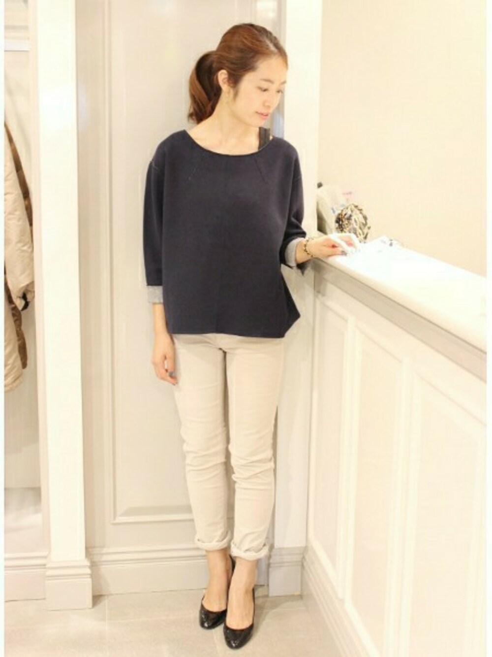 IENA町田店 スタッフのTシャツ/カットソー「ミニ裏毛ボンディングトップス。」を使ったコーディネート