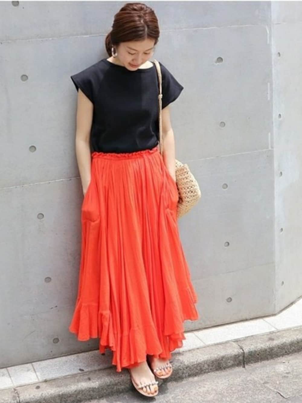 シンプルなトップスに合わせるだけで差がつくデザインスカート。 ランダムにゆれる裾が女性らしくて◎ 透け感のあるコットン素材でこれからの時期に活躍しそう!