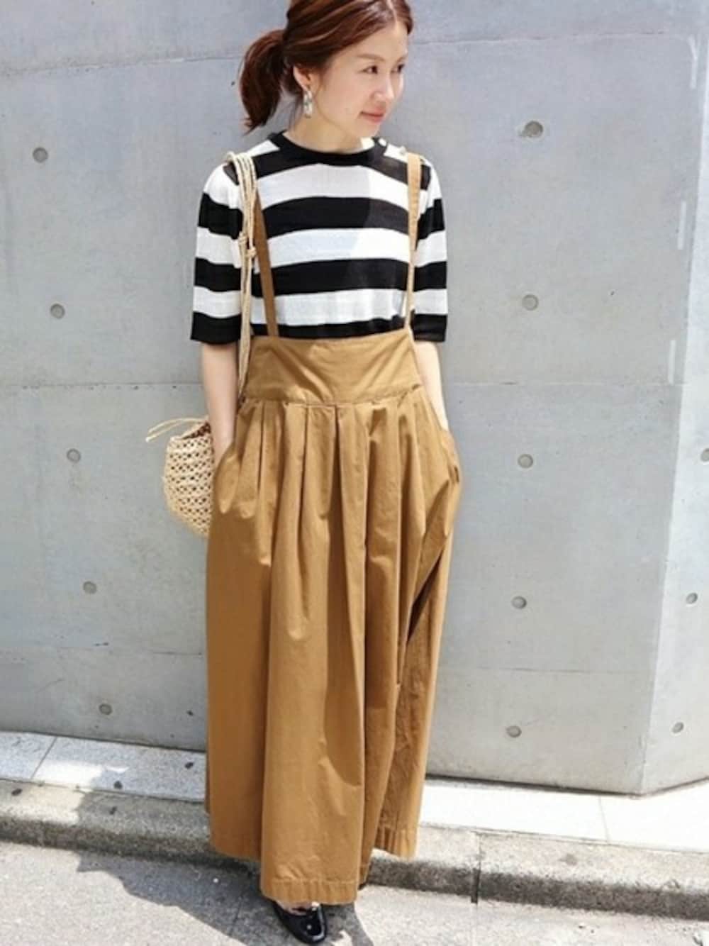 太めのボーダーは少しモードな印象に。 5分袖が今の季節にぴったりな一枚です。