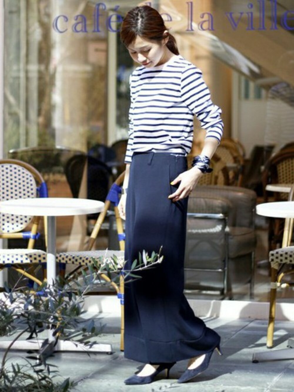 ベーシックでコンパクトなクルーネックタイプのボーダートップス。 ワイドパンツとあわせて。