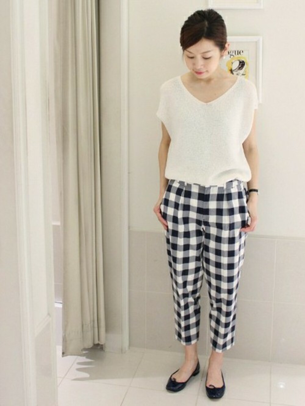 リネンニットとギンガムでマリンコーデ♪ GWのご予定はおきまりですか? お出かけにマリンスタイルはいかがでしょうか?
