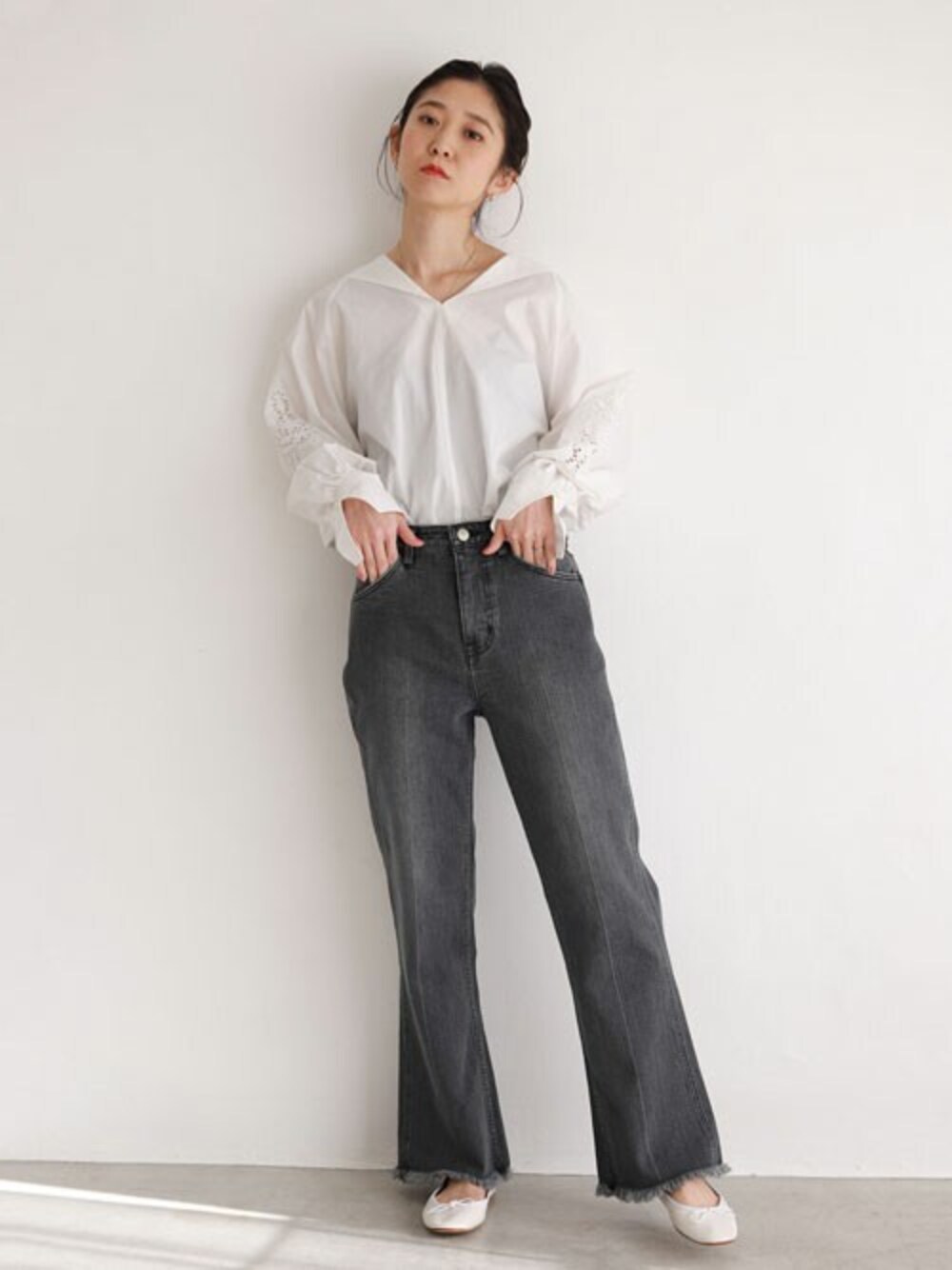 tsugumiのデニムパンツ「【Healthy denim/ヘルシーデニム】SLOBE別注 フレアデニムパンツ【洗濯機使用可】◆」を使ったコーディネート
