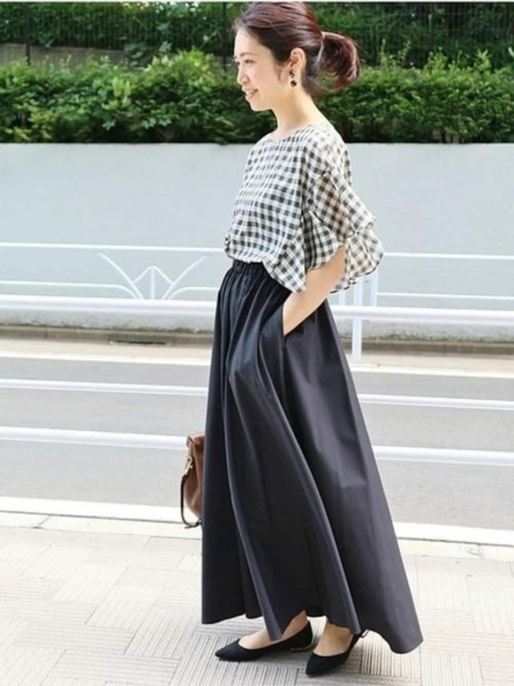 程よく透け感のあるギンガムチェック柄ブラウス。 軽い素材感なら、フレアスカートに合わせても重たくならず柔らかな印象に。