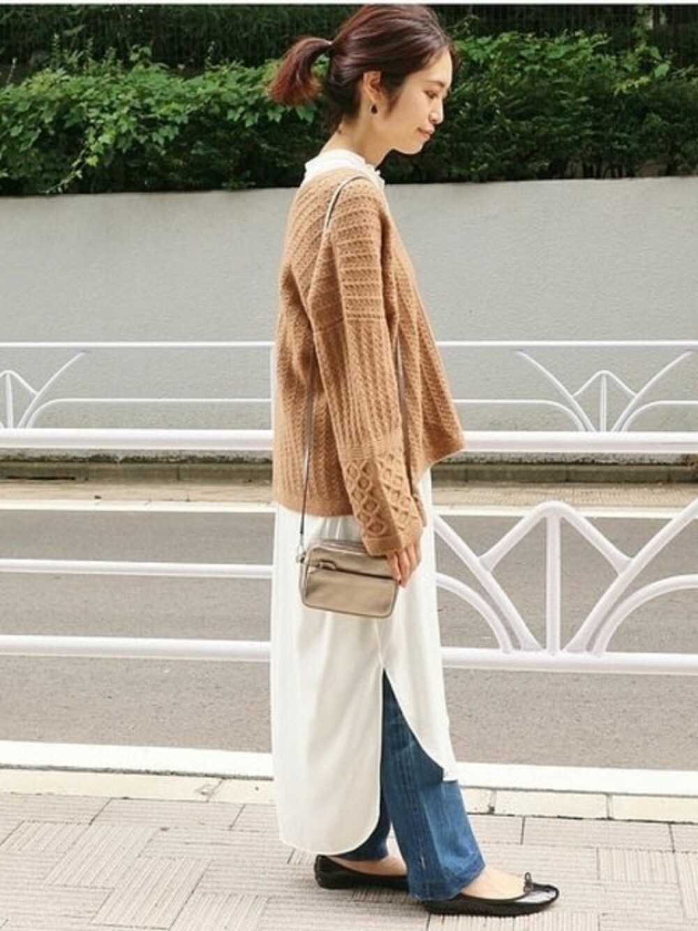 人気のレイヤードスタイル、秋冬はルーズニットに長さのあるアイテムがお勧めです。 落ち感のあるアイテムを選べばきれいにまとまり、リラックス感のある着こなしに。