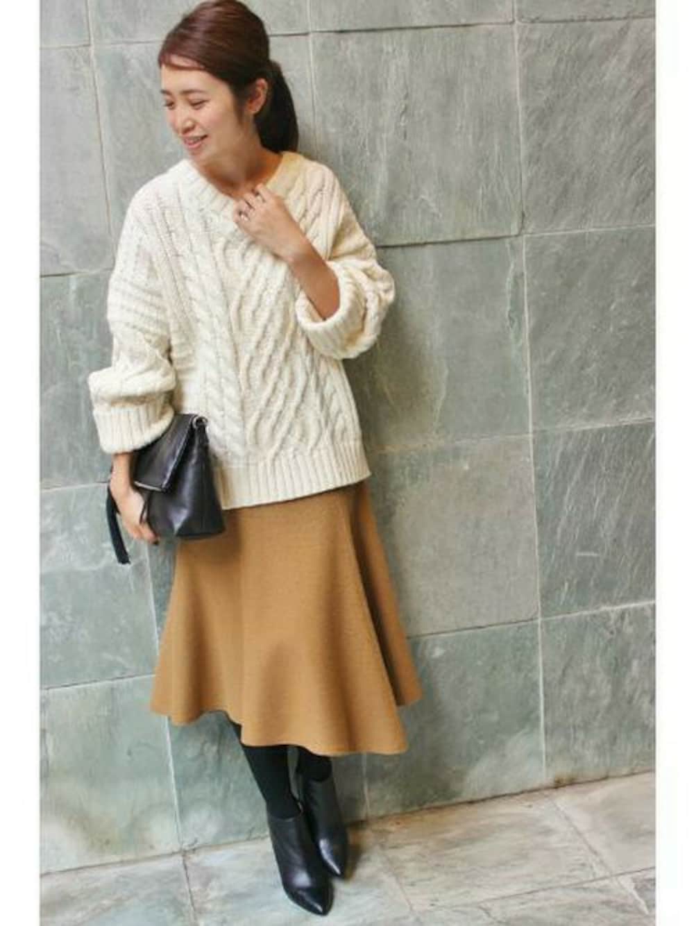 ふんわりと動きのあるスカート。 ざっくりケーブルニットと合せて。