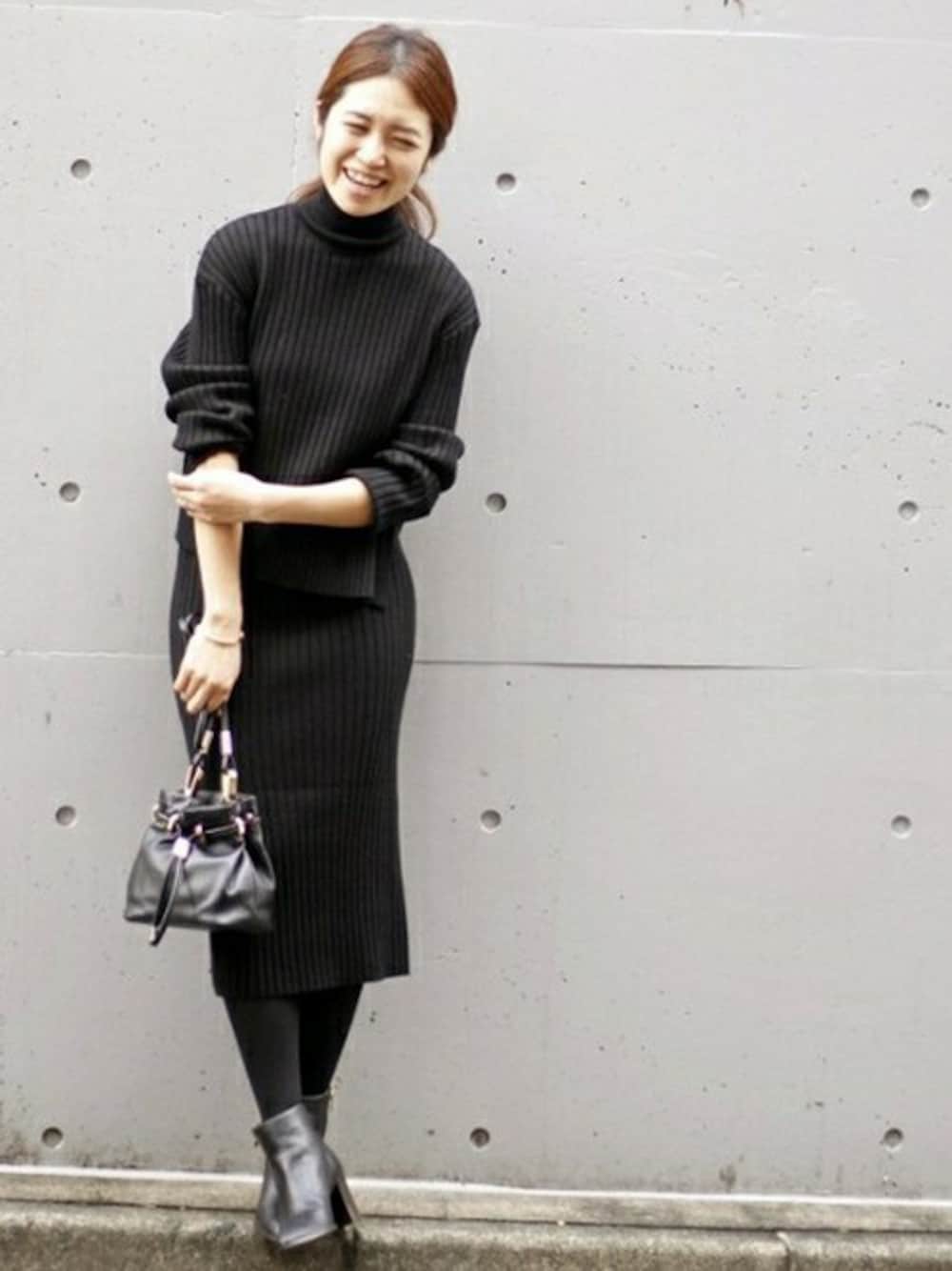 リブニットのワンピース 。 トップスとワンピースが一体型になっているタイプ。 あったかくて着心地も◎
