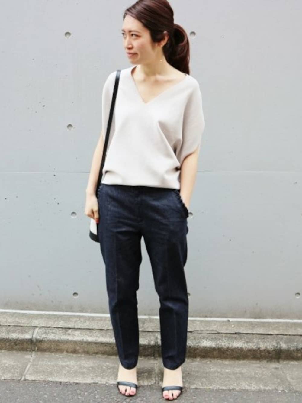 Woodyのニット/セーター「コットンストレッチ コクーン Vネック プルオーバー◆」を使ったコーディネート