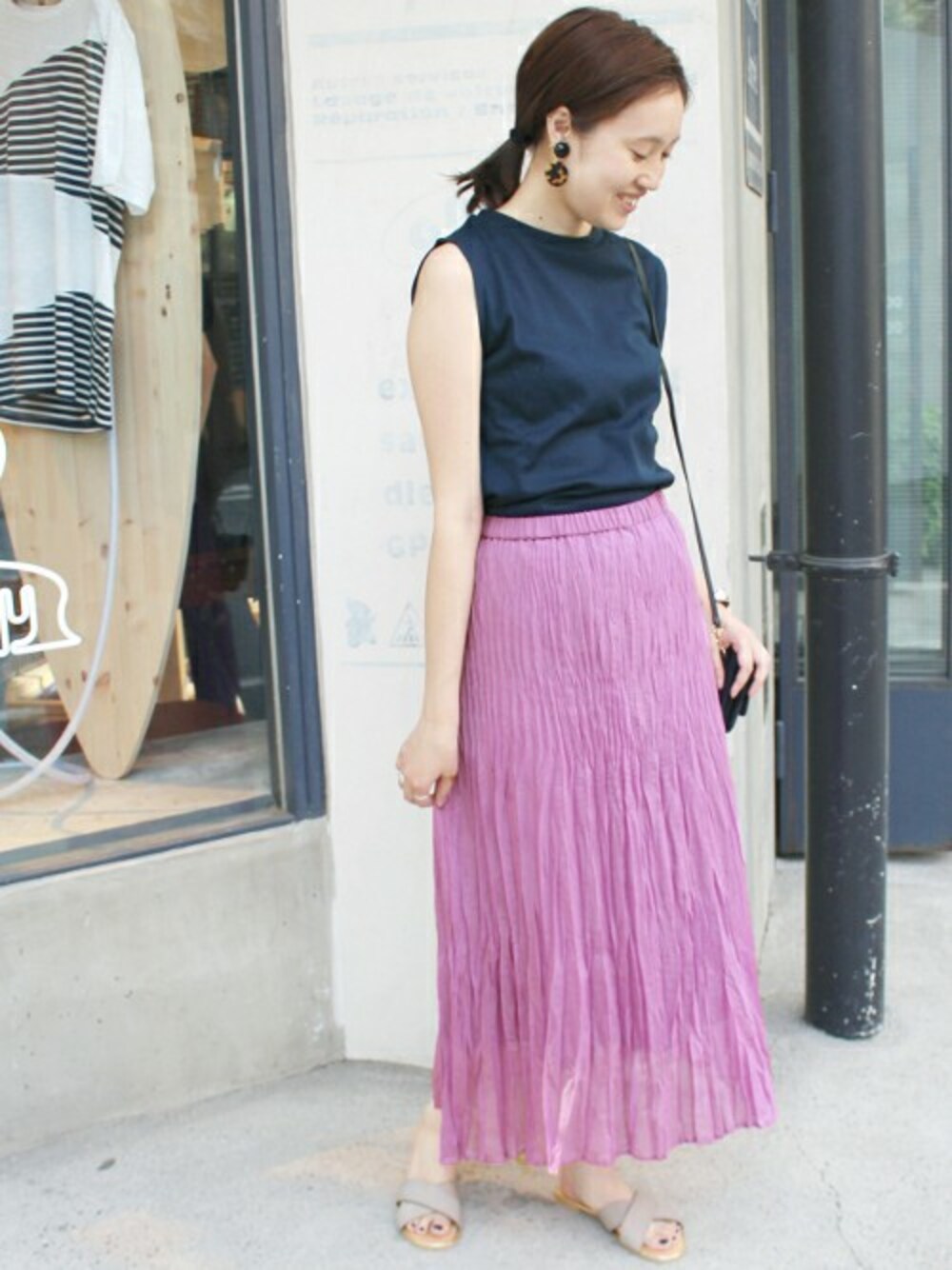 Sallyのスカート「ブライトスパンランダムプリーツスカート◆」を使ったコーディネート