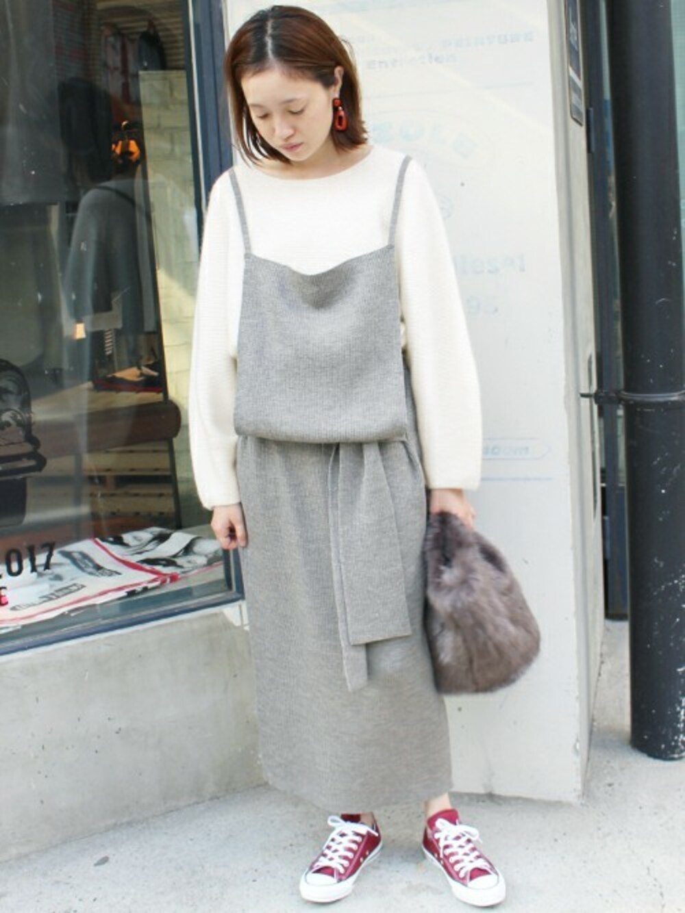 アンゴラ混で保温性も抜群なニット。 シンプルなデザインなので、サロペットと合わせた旬なコーディネートがおすすめ◎