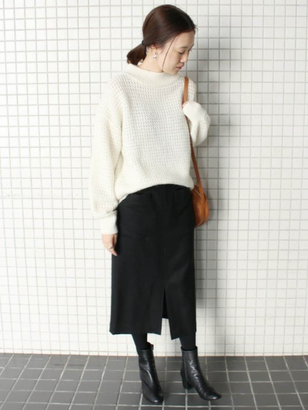 着回し力抜群のタイトミモレスカート。 前スリットがほどよい軽さをプラスしてくれます。 ゆったりめのニット合わせもバランスよく着ていただけます◎