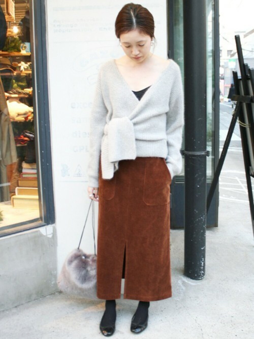 今季欠かせないコーデュロイアイテム。 カジュアルな印象ながらも、ミモレ丈で女性らしい印象に。 シンプルな形なので、デザインニットと相性抜群です◎