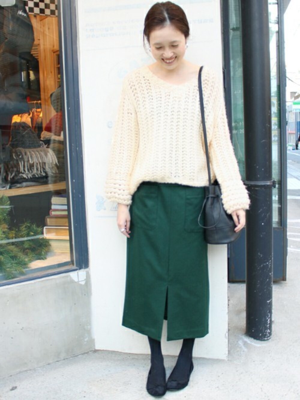 Sallyのスカート「ハイカウントサキソニータイトミモレスカート◆」を使ったコーディネート