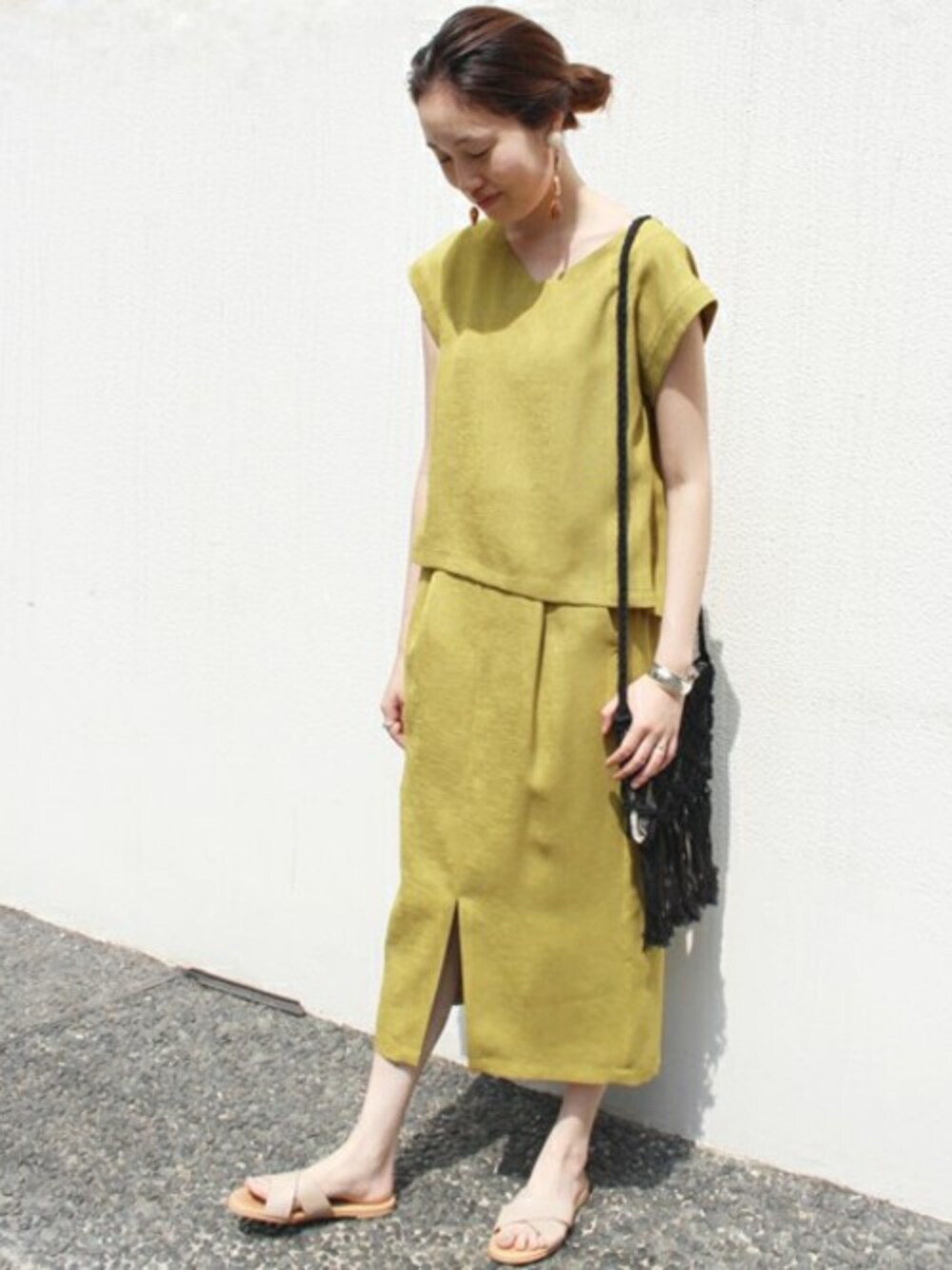 Sally(SLOBE IENA 本社)のワンピース「リネンライクブラウス×スカートセットアップ◆」を使ったコーディネート