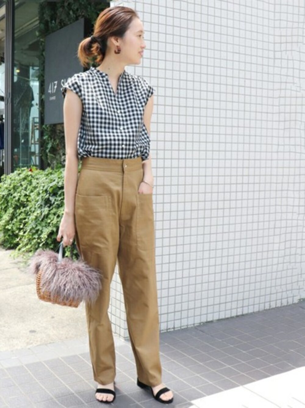 Sally(SLOBE IENA 本社)のシャツ/ブラウス「ギンガムフレンチスリーブブラウス◆」を使ったコーディネート