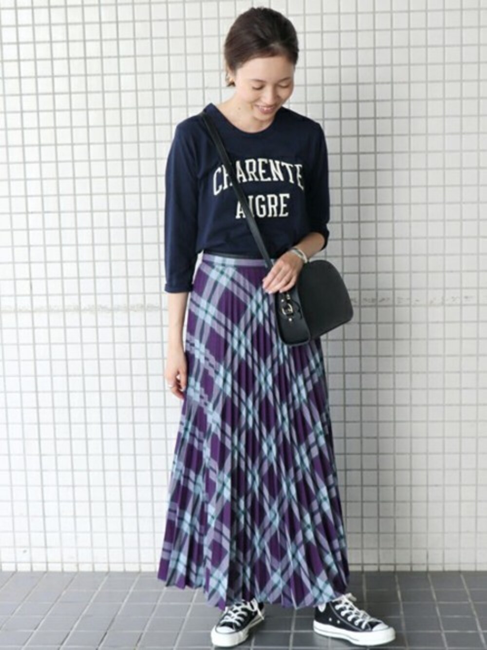 Sally(SLOBE IENA 本社)のスカート「マドラスチェックプリーツスカート◆」を使ったコーディネート