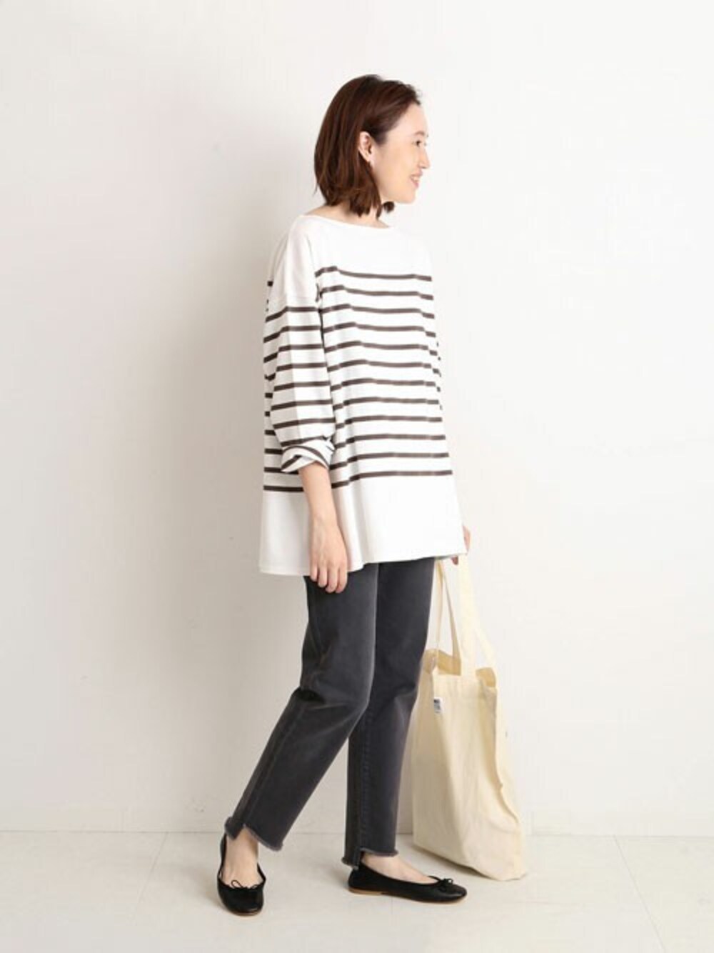 ◆パネルボーダーオーバーTEE すっきりしたボトム合わせでバランスの良いスタイリングに。 シンプルな合わせでもなんとなくこなれ感が出るボーダーTです◎ ざっくりしたオーバーシルエットとニュアンスカラーが魅力の1着。 しっかりめの生地で着ていて安心感も抜群です。 ラクちんだけど、大人っぽく着て頂けるおすすめアイテムです! ********************** 《スタッフ名:Sally》 年齢:30代前半/身長:162cm/体型:細身/普段サイズ:M/着用サイズ:フリー サイズ感:ヒップが隠れる長めの着丈。身体のラインを拾わないオーバーサイズです。 素材感: しっかりとした生地ですが、柔らかさもあり着やすいです。 着心地: きゅうくつ感もなく、楽な着心地。 **********************