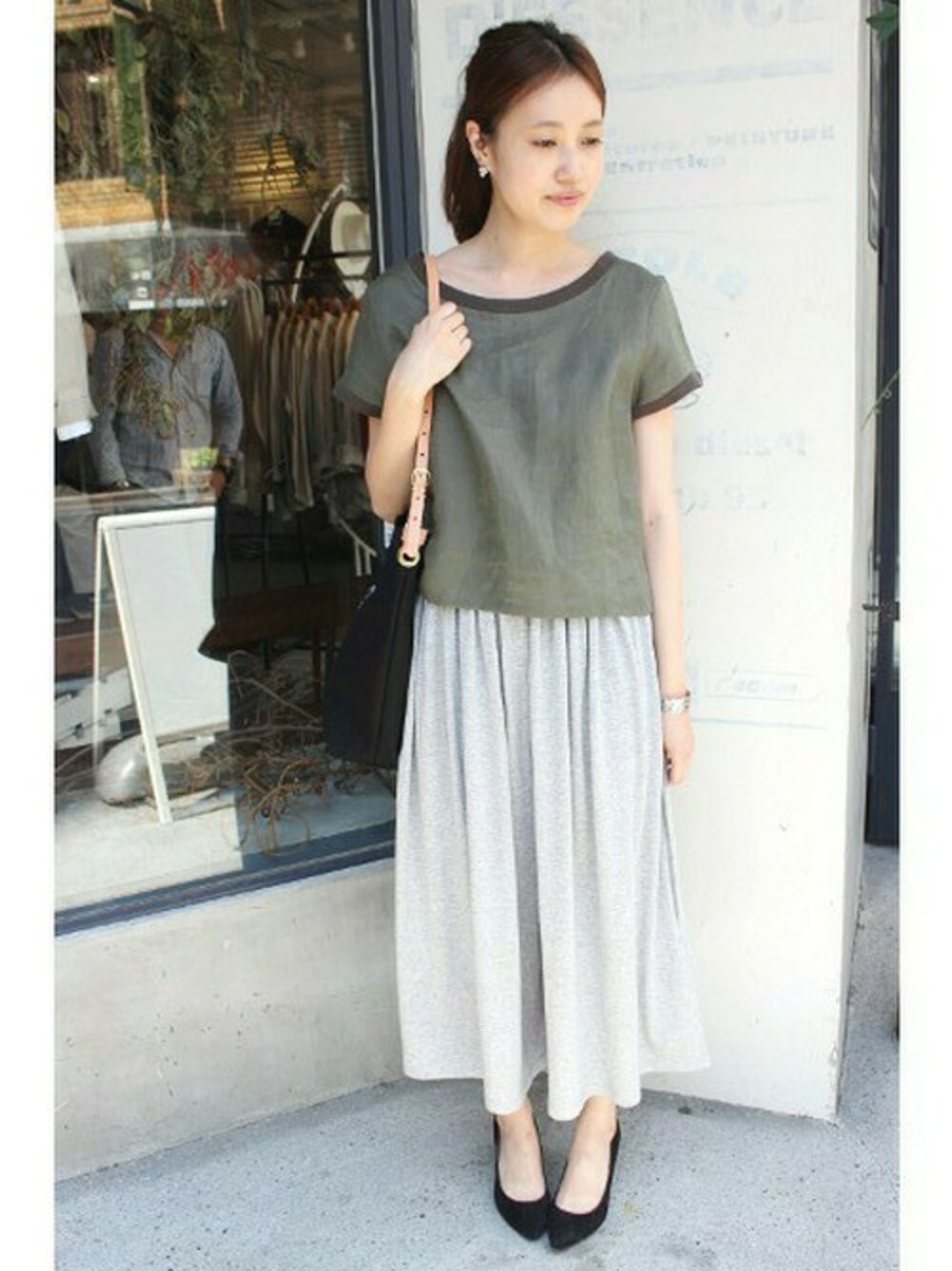 麻トップスとワイドパンツで、リラックススタイリング。 パンプスで全体を引き締めて。