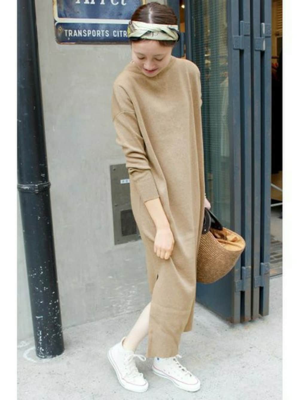さらっと1枚着のできるニットワンピース。 深めのスリットがバランスよく見せてくれます。 肌寒い時期にはタイツやデニムで合せても可愛い!