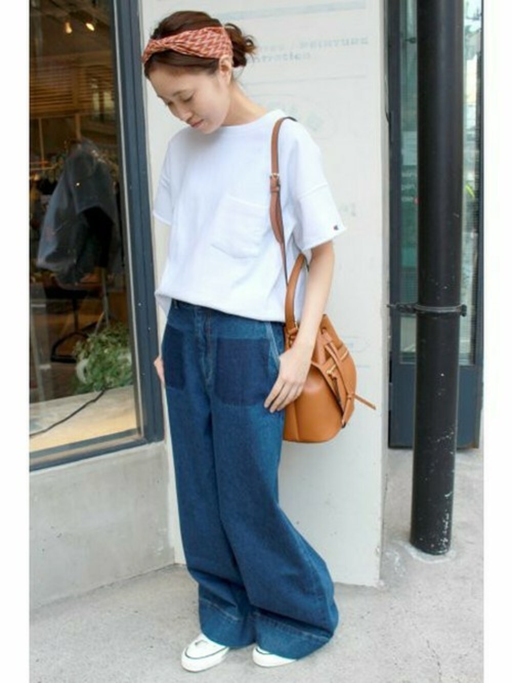 Sallyのデニムパンツ「LE DENIM ハイウエストデニムワイドパンツ◆」を使ったコーディネート
