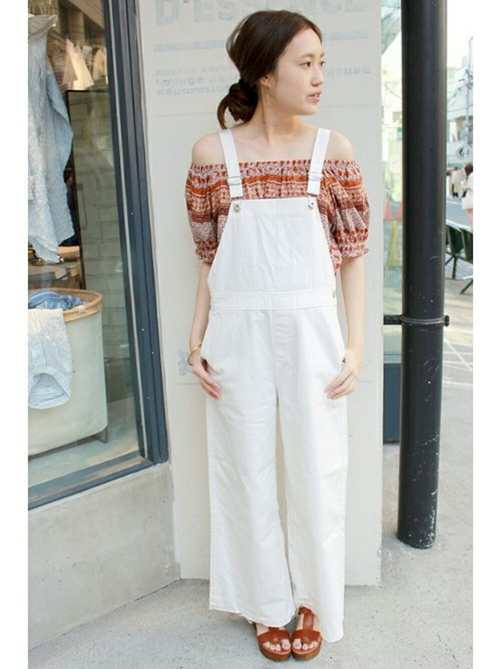 一枚で存在感のあるプリントブラウス。 サロペットと合わせればショート丈も気にならず着用いただけます ホワイトとのカラーバランスが爽やかですね。