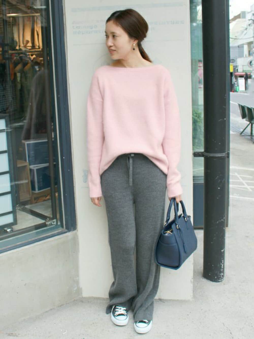 今年注目のカラーニット。 優しい色合いのピンクカラーが冬のスタイルを明るくしてくれます。