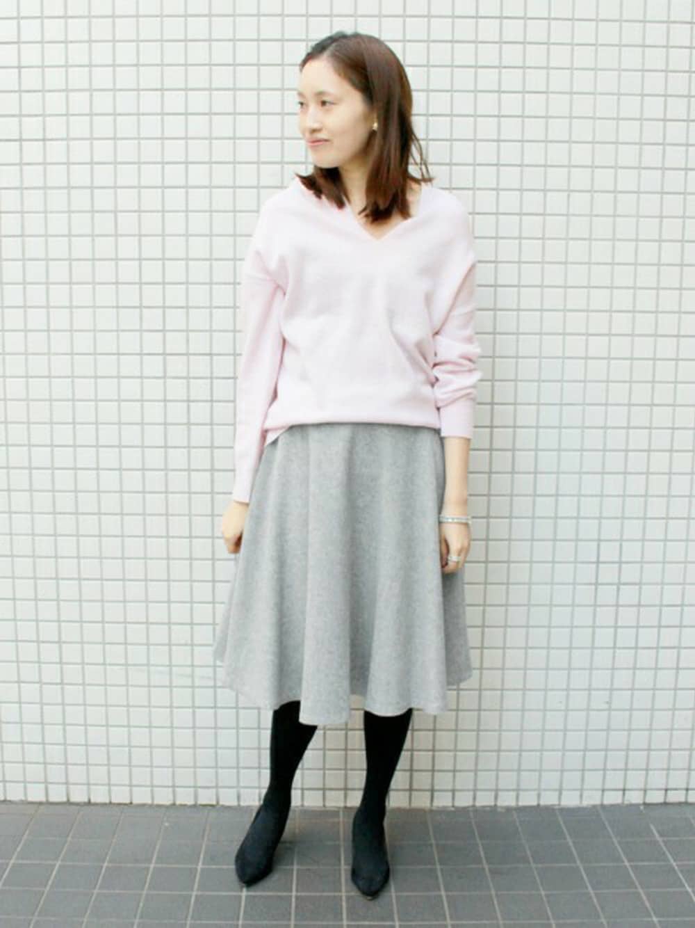 Sallyのニット/セーター「9G ニュアンスVネックプルオーバー◆」を使ったコーディネート
