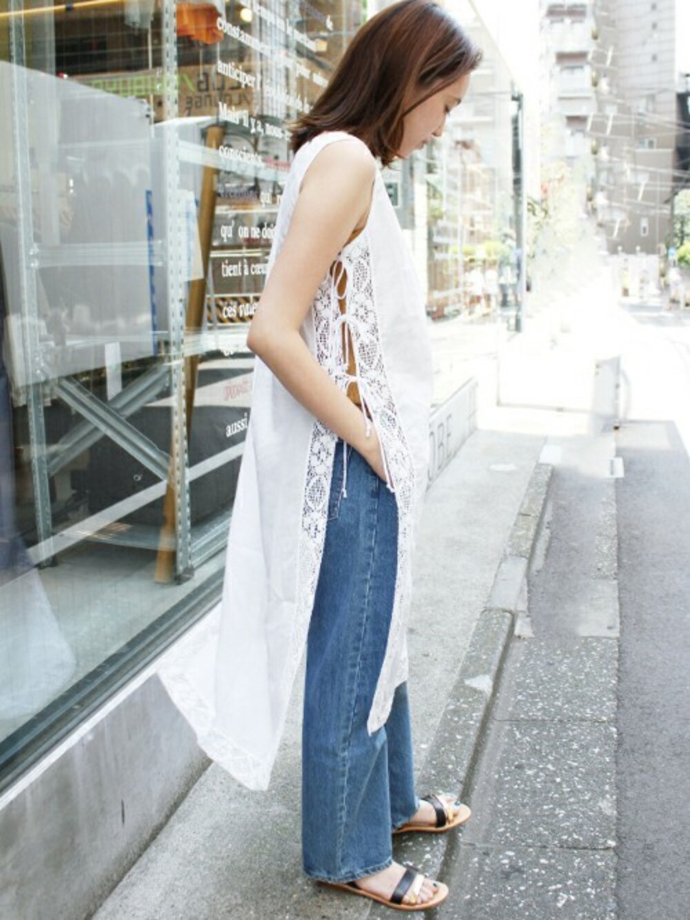 サイドラインに刺繍レースを施しているワンピース。 透け感があるのでレイヤードスタイルを楽しんでいただく仕様になっています。