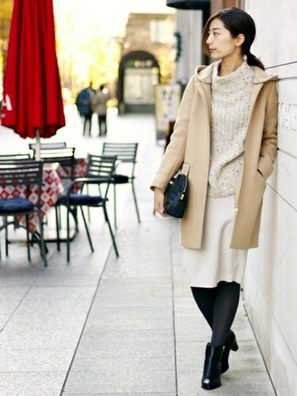 トーン×トーンのコーディネートをするのが気分…♪ パキっとした色を加えることで、ほどよいカジュアルスタイリングの完成。 タイツは、クロではなくチャコールグレーを合わせるのがポイント。
