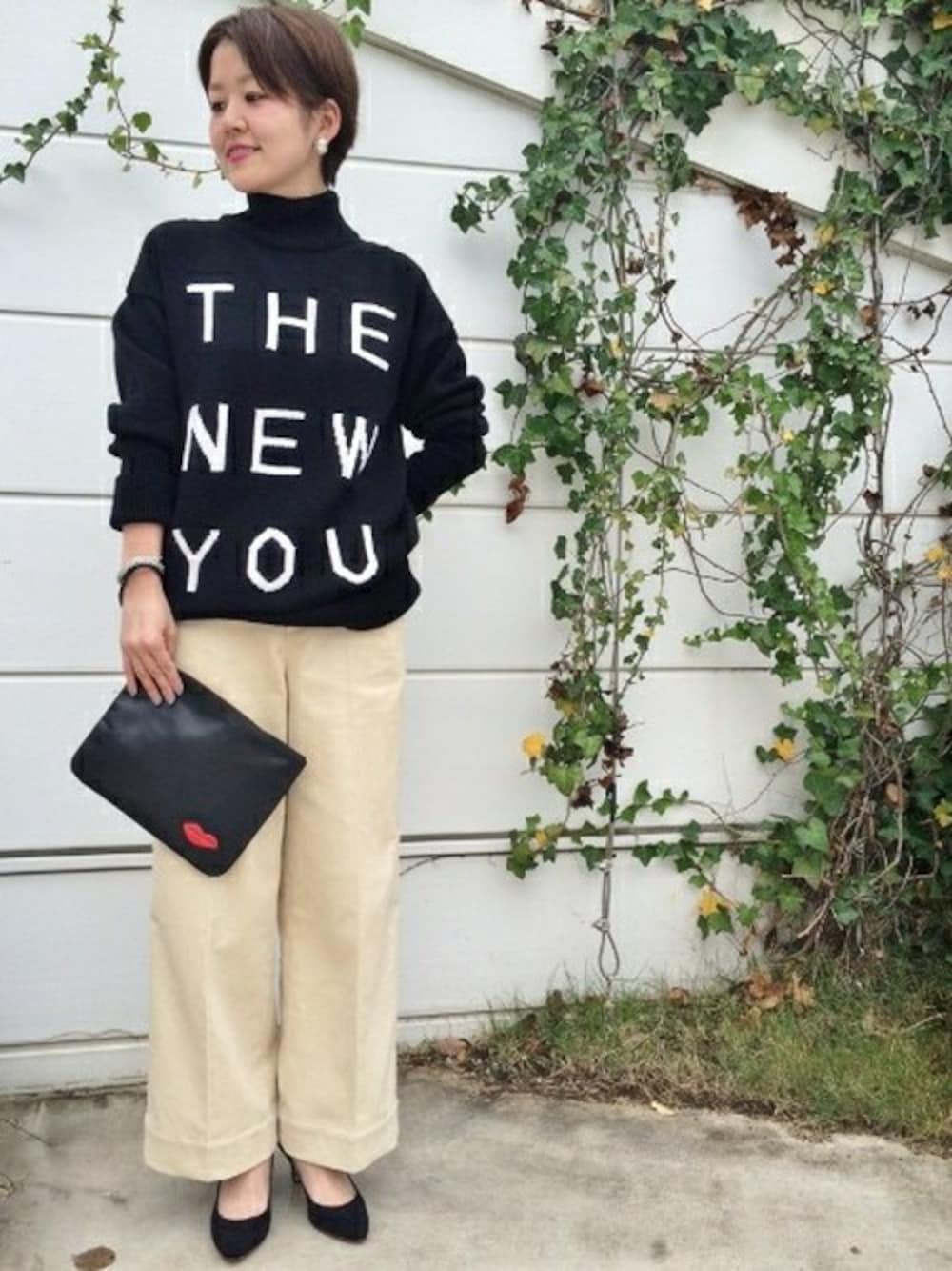 ワイドすぎないデザインのパンツで、ボリュームのあるトップスと合わせると今年らしく着こなせます♪
