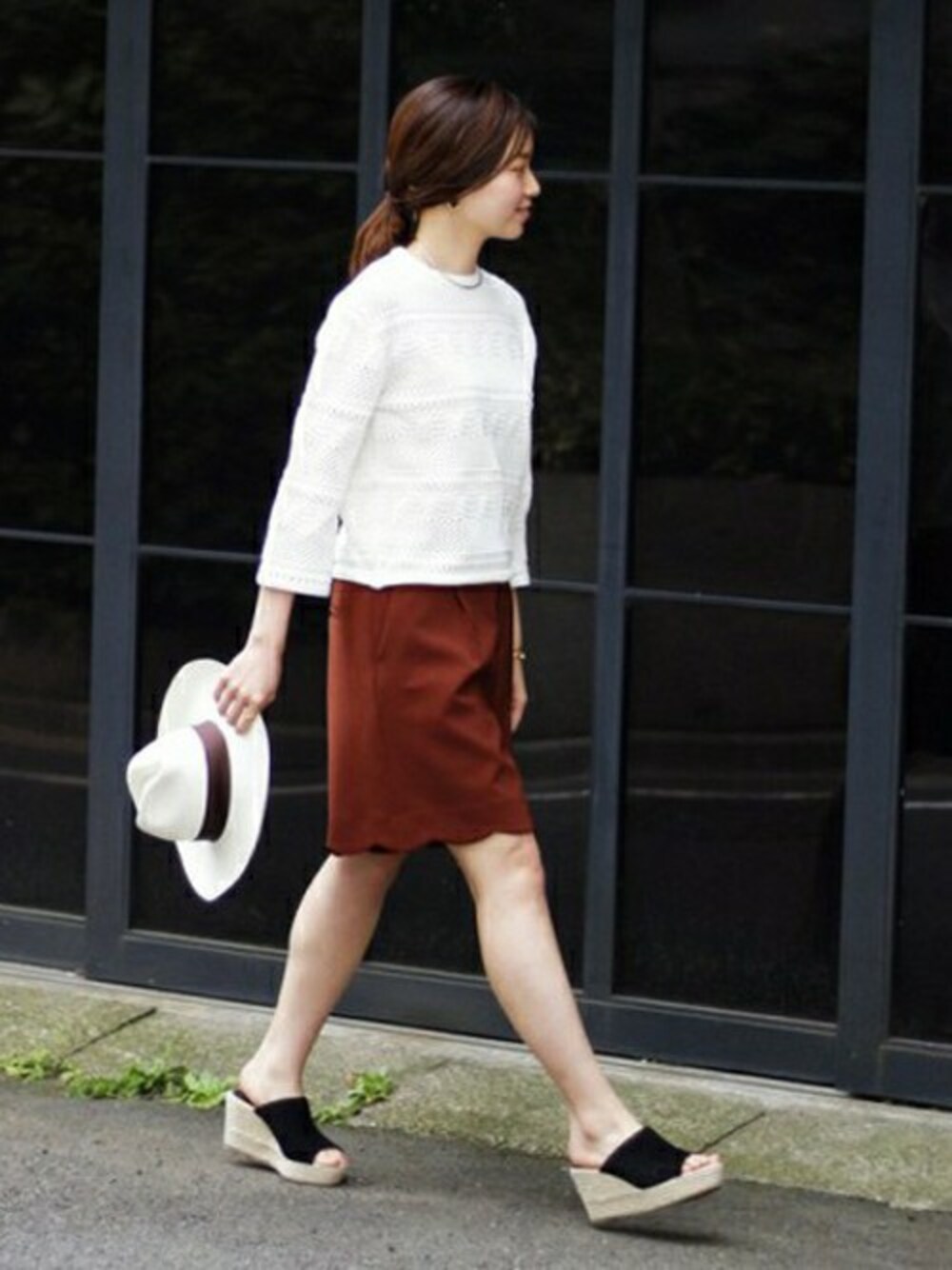 【JULIE COGAM pour IENA】Spring Collection ショートパンツを使ったヘルシーなコーディネート。 ニットの繊細な柄編みや、ショーツの裾のスカラップがポイント。
