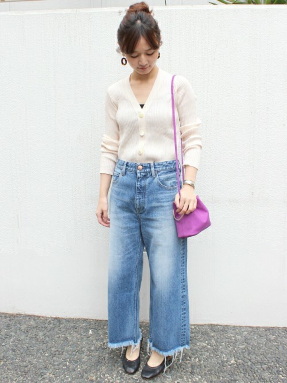 Chikaのカーディガン/ボレロ「コットンランダムリブカーディガン◆」を使ったコーディネート