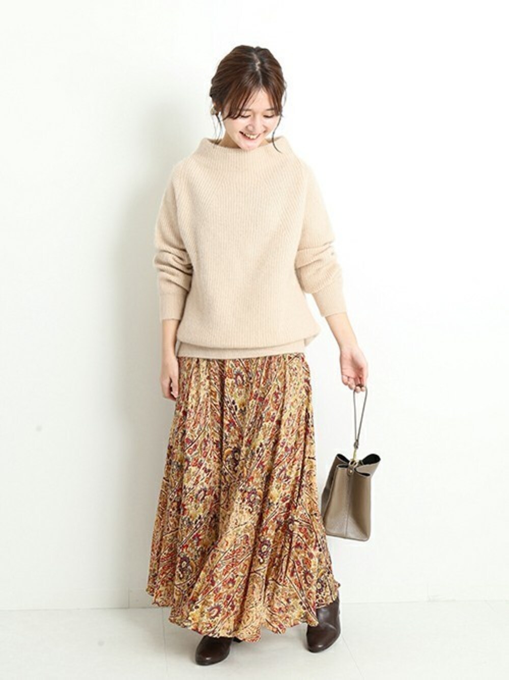 Chikaのニット/セーター「ラクーンカシミヤ混タートルプルオーバー◆」を使ったコーディネート