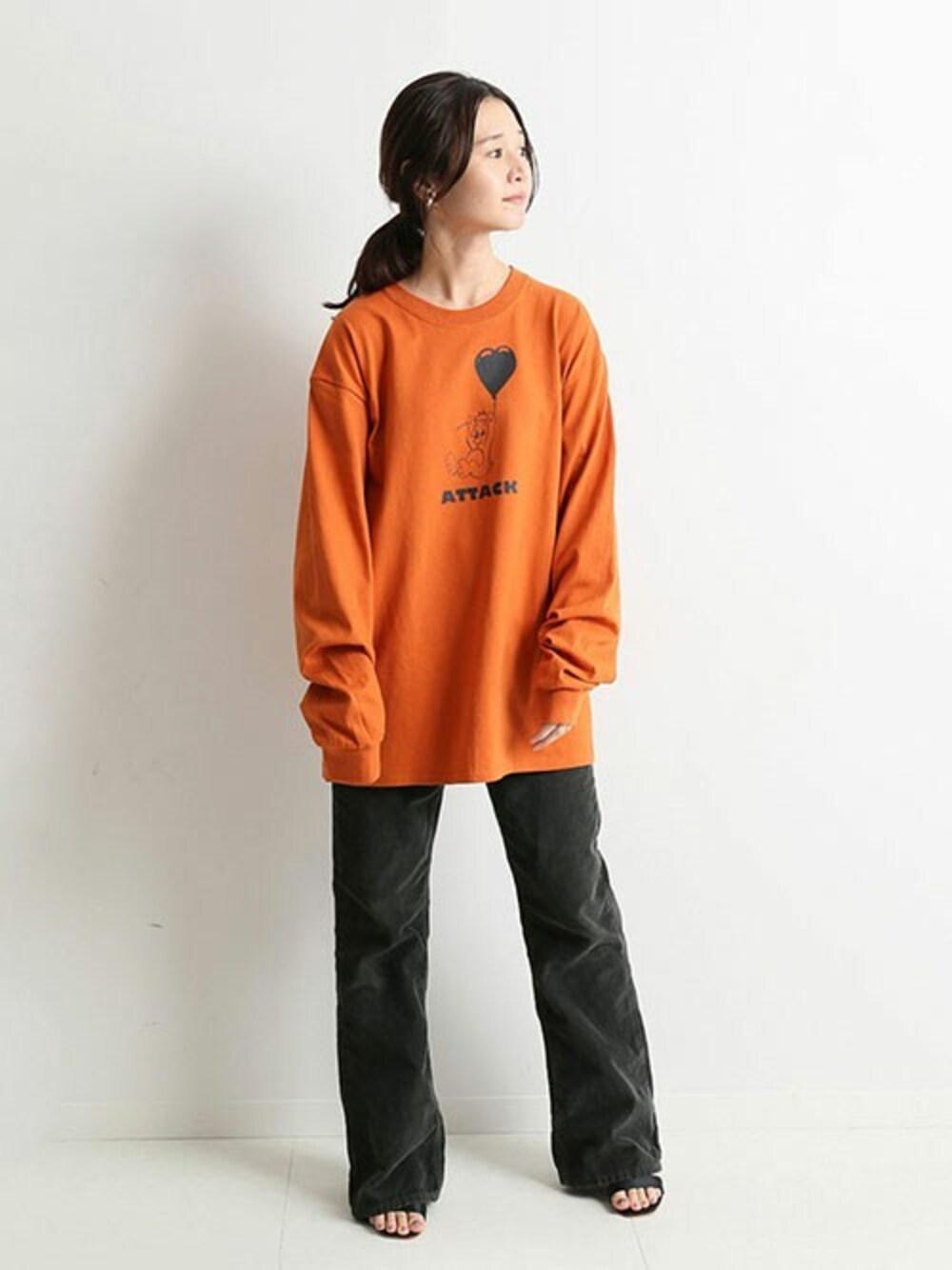 ◆【 SELENAHELIOS×SLOBE 】Attack Bear TEE 遊び心あるプリントが大人可愛いTシャツ。 ゆったりとしたサイズ感でラフに着て頂けます。 足元はヒールですっきりと抜け感を出しました◎ 大人可愛いプリントTは1着あるとスタイリングがさらに楽しくなります! ********************** 《スタッフ名:Chika》 年齢:20代半ば/身長:158cm/体型:普通/普段サイズ:S/着用サイズ:フリー イエベ春/骨格ナチュラル サイズ感:袖丈長めのゆったりとしたサイズ感。ヒップが隠れる丈感でした。 素材感:やや薄地のビンテージライクなカットソー素材。 着心地:身体のラインを拾わないシルエットで、インナーにハイネックなどを重ねてももたつかずに着られます。 **********************