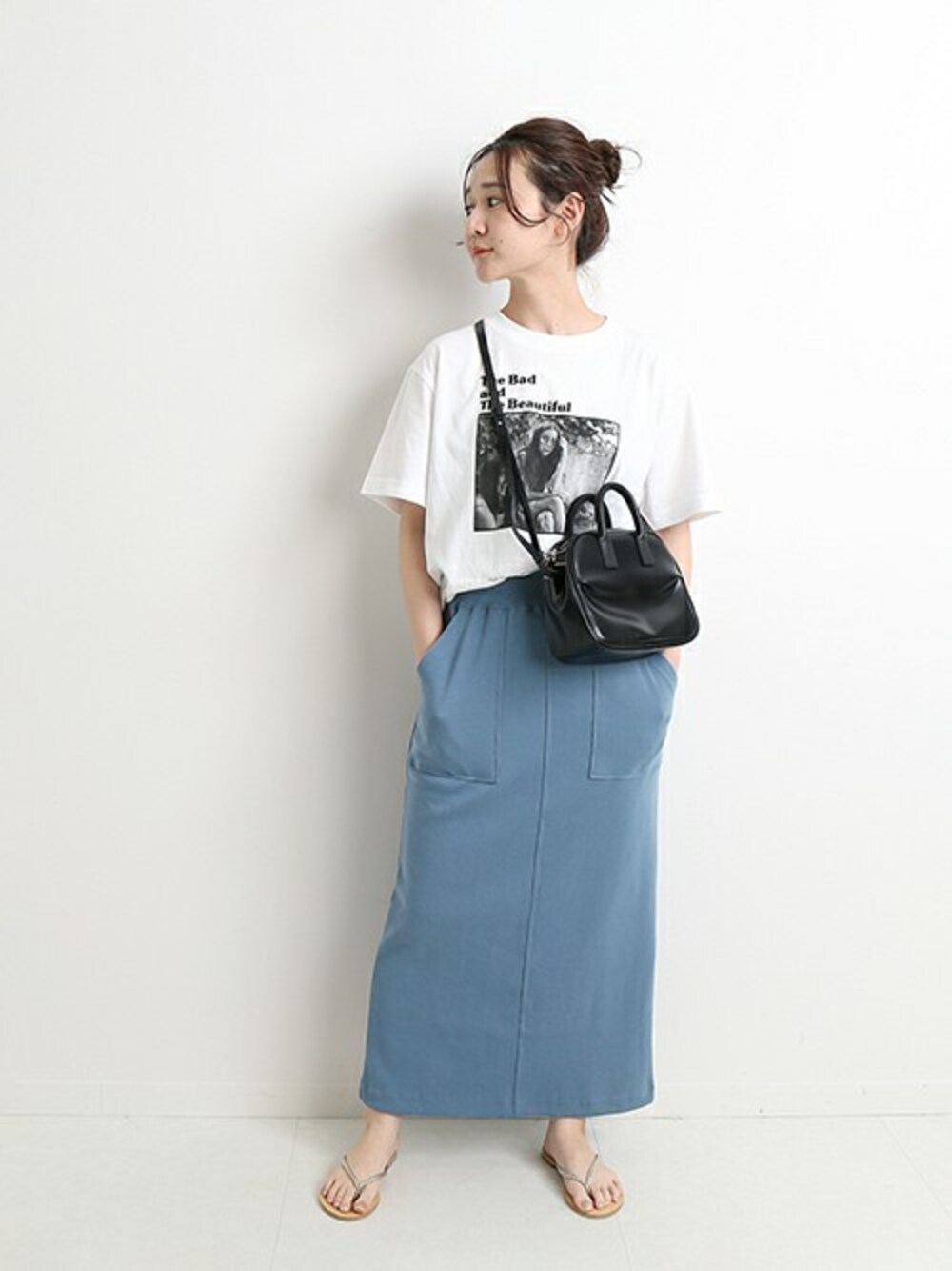 ◆コットンマリブフライススカ―ト カジュアルに着こなせるタイトスカート。 カットソーとあわせたシンプルなスタイリングの時は カラーを入れると地味にならないのでお勧めです! ********************** 【スタッフ着用コメント】 《スタッフ名:Chika》 年齢:20代半ば/身長:158cm/体型:普通/普段サイズ:S/着用サイズ:フリー サイズ感:全体的にゆったりとしたサイズ感。足首が隠れる丈感。 素材感:柔らかなコットン素材。透け感は気になりませんでした。 着心地:伸縮性があり、着心地も抜群です。 **********************