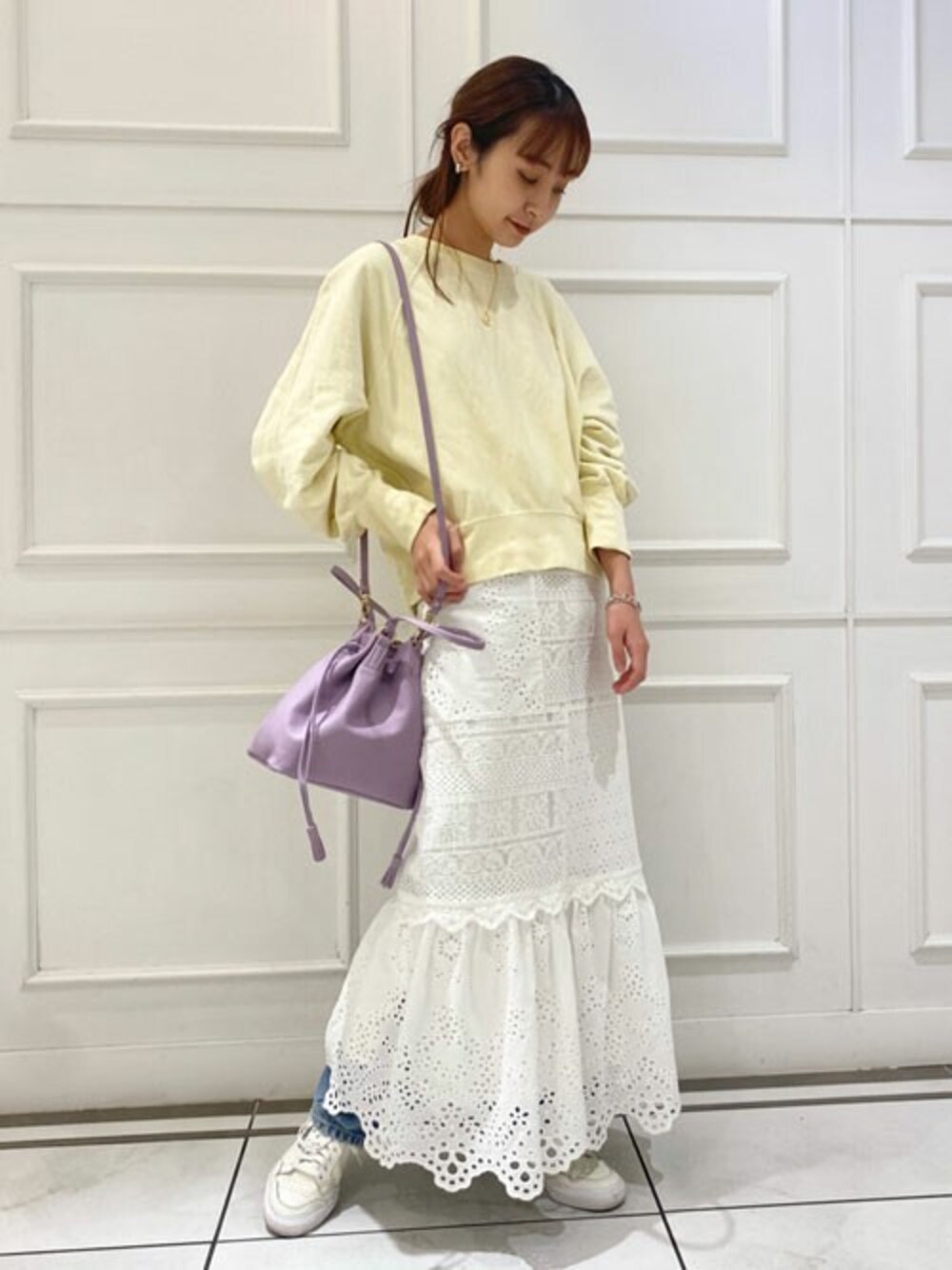 ● レースパッチワークキャミワンピース 年齢/20代後半 身長/163cm パーソナルカラー/イエベオータム 骨格/ナチュラル 体型/高身長、細身 普段サイズ/S〜M 着用サイズ/36 □サイズ感 胴回りはタイトで少しマーメイドシルエット。 □素材感、着心地 裏地もしっかり膝下まであり張り付く嫌な感じなく、白ですが安心して1枚で着て頂けます! □ポイント ワンピースをレイヤード風にスウェットの中に重ね着してみました♪春ならではのパステルカラー、イエロー×パープルの組み合わせがぐっと気分を上げてくれます! ※シューズ、デニムは私物です。 ●Instagram⇒ @28ryonryon 気軽にフォロー、コメントやDMで着用感などもお伺いしております☺︎!