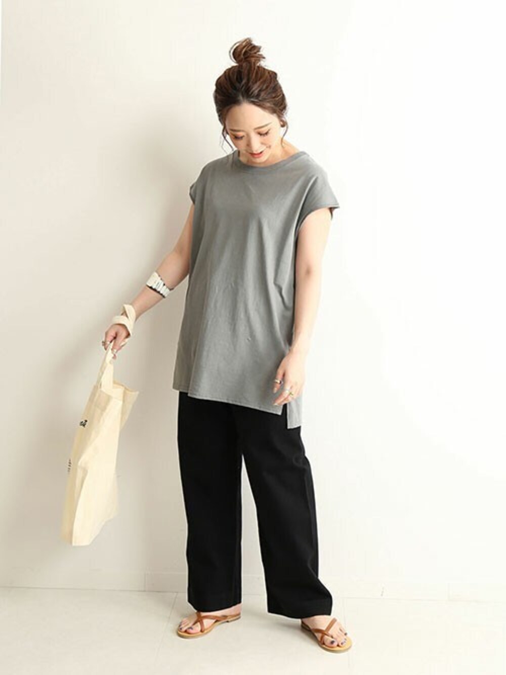 momoのTシャツ/カットソー「ハイツイスト天竺ノースリーブTEE【手洗い可能】◆」を使ったコーディネート