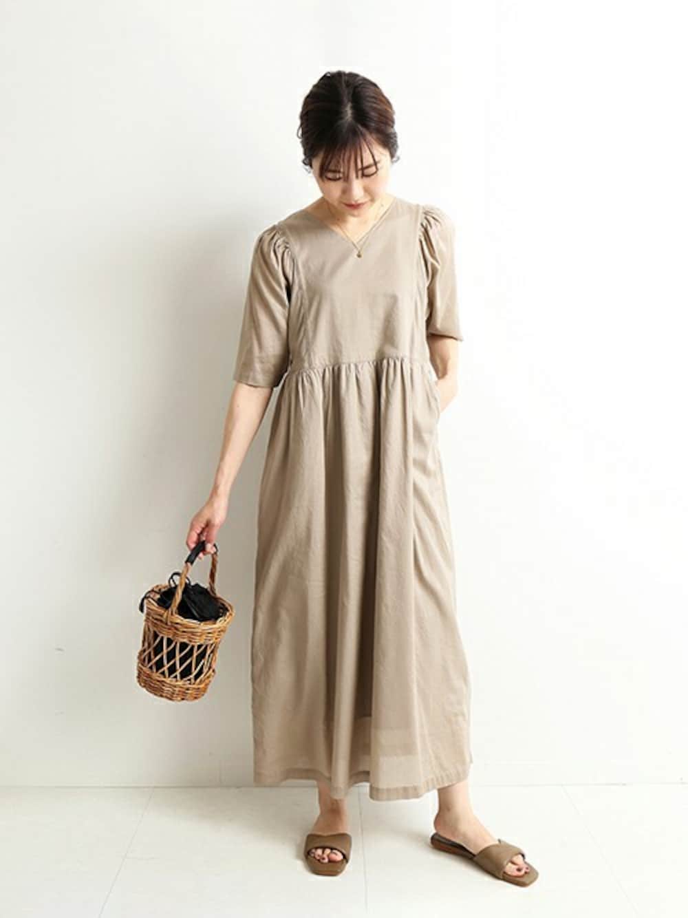 Yuriのワンピース「ギャザースリーブリラックスワンピース【手洗い可能】◆」を使ったコーディネート