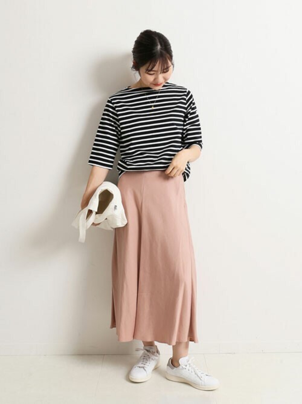◆ツイルフレアスカート◆ 歩くたびにしなやかに揺れる裾の動きが魅力的なフレアスカート。 上品でマイルドなピンクを引き立たせてくれる モノトーンなトップスや小物を使用しコーディネートしました。 instagram→@_yuuuriii__ ********************** 年齢:20代後半/身長:159cm/体型:細身/普段サイズ:34,36/着用サイズ:38 サイズ感:全体的にスッキリしたサイズ感です。159cmでスネくらいの丈です。 素材感:柔らかなツイル素材。透け感は気になりませんでした。 着心地:裾の広がりが女性らしく可愛い。ロングスカートでも軽くて歩きやすいです。 **********************