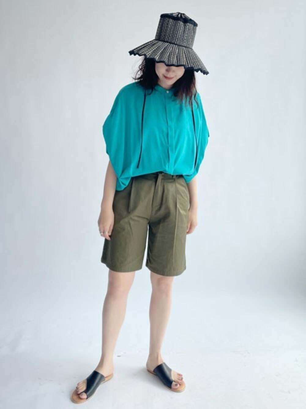 ◆ 【UNIVERSAL OVERALL 】SLOBE別注ショートパンツ フロントにタックが入っていて、ふんわりゆとりのあるシルエットです。 オーバーなブラウスをキュッとタックインして メリハリのあるスタイリングに! カジュアルなカーキはブラックの小物で辛口にまとめるのがオススメです◎ ◉165cm/高身長/普通体型/普段着用サイズ:38〜40/骨格:ナチュラル/パーソナルカラー:イエベオータム 【Instagram】 @sakotn2 お気に入りのスタイリングなどをご紹介しています!