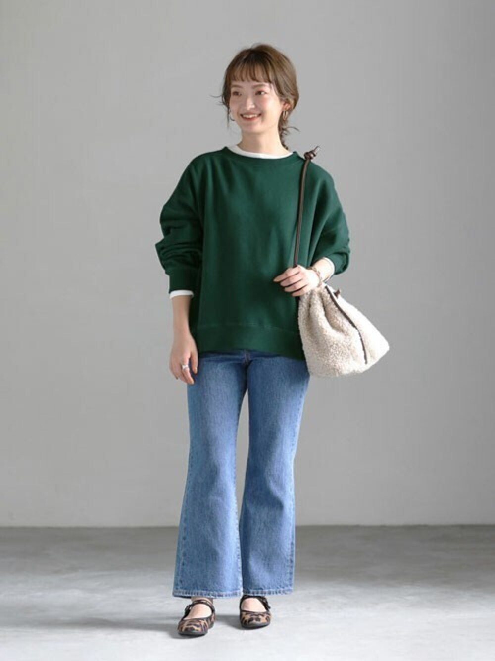 身長:159cm/体型:普通/普段サイズ:36・38(S〜M)/年齢:20代前半/骨格ウェーブ/イエベ春 ◆裏毛ワイドプルオーバー 着用サイズ:フリー 無地スウェット×デニムの定番カジュアルスタイル! レイヤードしてカットソーをチラ見せ◎ ボアのバッグで季節感もプラスしてみました。 グリーンカラーが今年らしく、 深みのあるグリーンなので大人っぽく着て頂けます。 程良くゆるっと感のあるシルエットで 様々なボトムと合わせやすいです♪ 1着持っていると便利なアイテムです! 〈instagram〉 お洋服、コスメなど更新しております! 良ければフォローして下さい♪ ➡︎@__ayumi122__