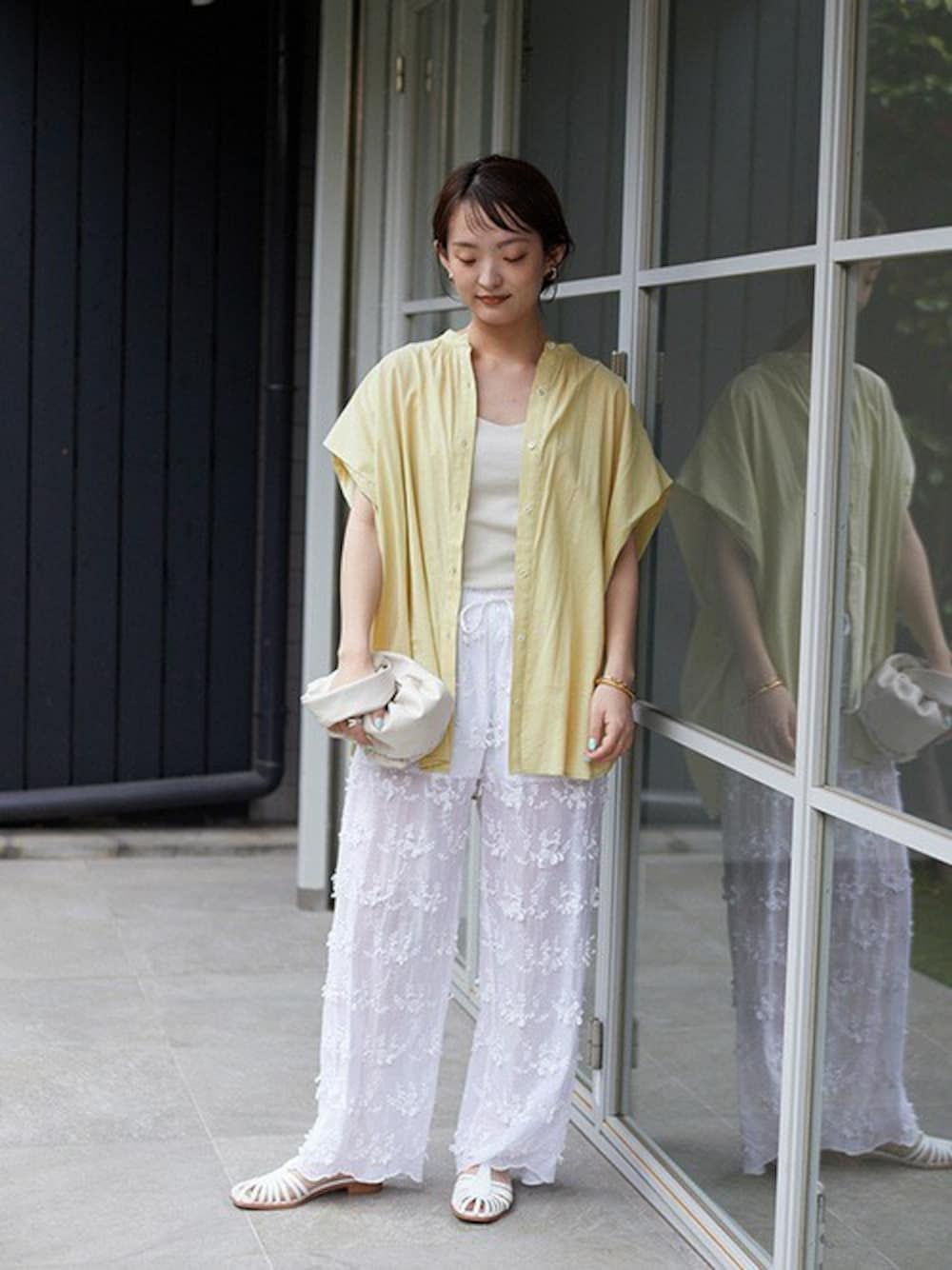 ayumi(SLOBE IENA 本社)のシャツ/ブラウス「《追加》レーヨンボイル バンドカラーブラウス」を使ったコーディネート