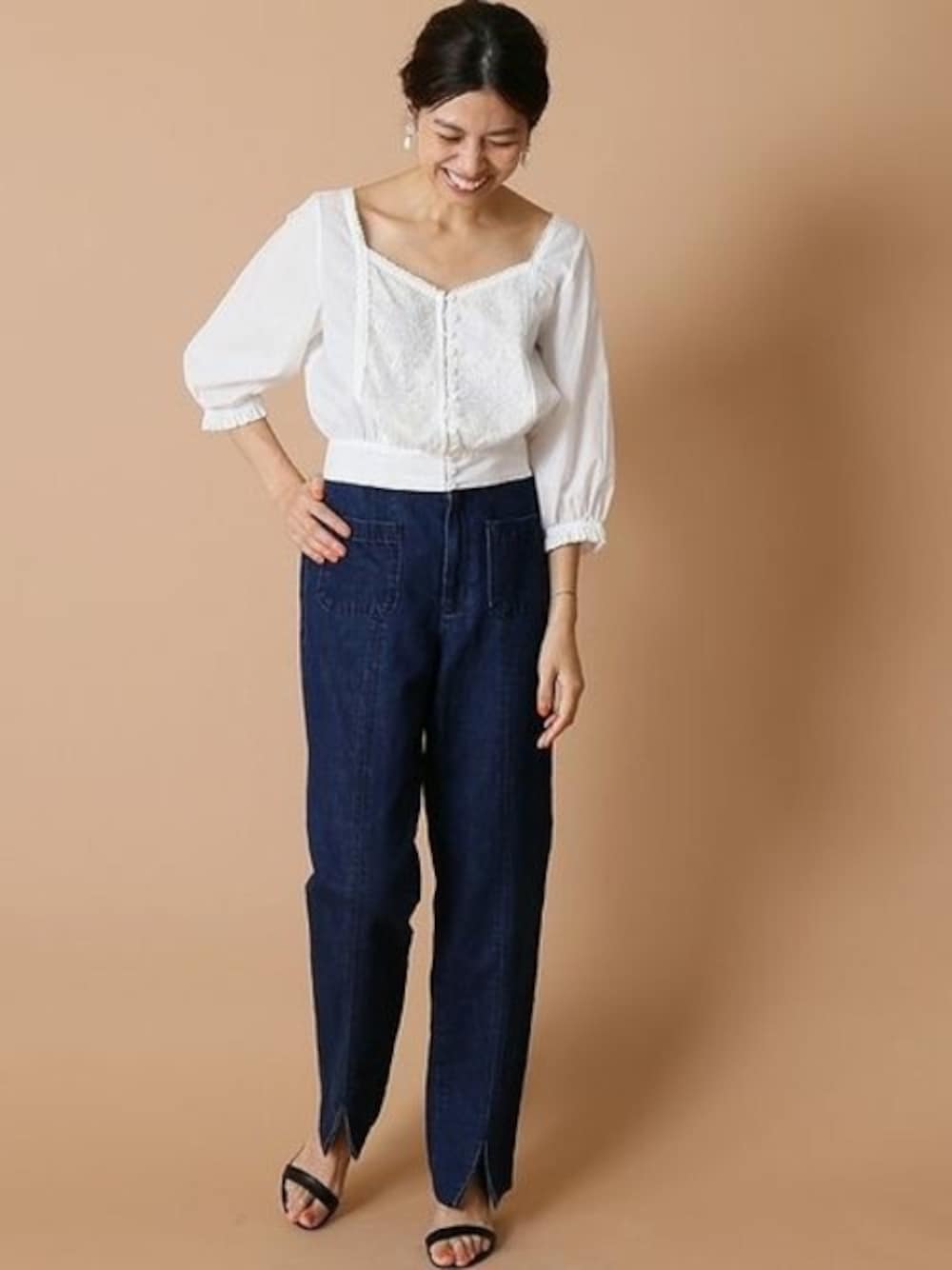 大人気のレースコンビブラウス! 夏バージョンが登場です! フェミニンな一枚はやっぱりデニムが◎