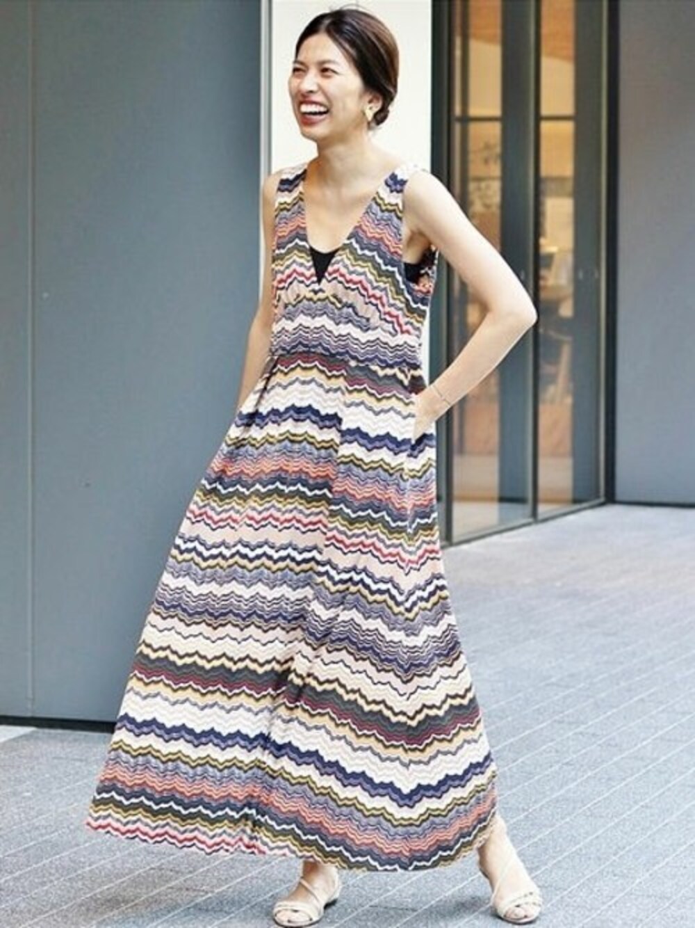 sono(IENA 本社)のワンピース「IENA LA BOUCLE ランダムボーダープリントワンピース◆」を使ったコーディネート