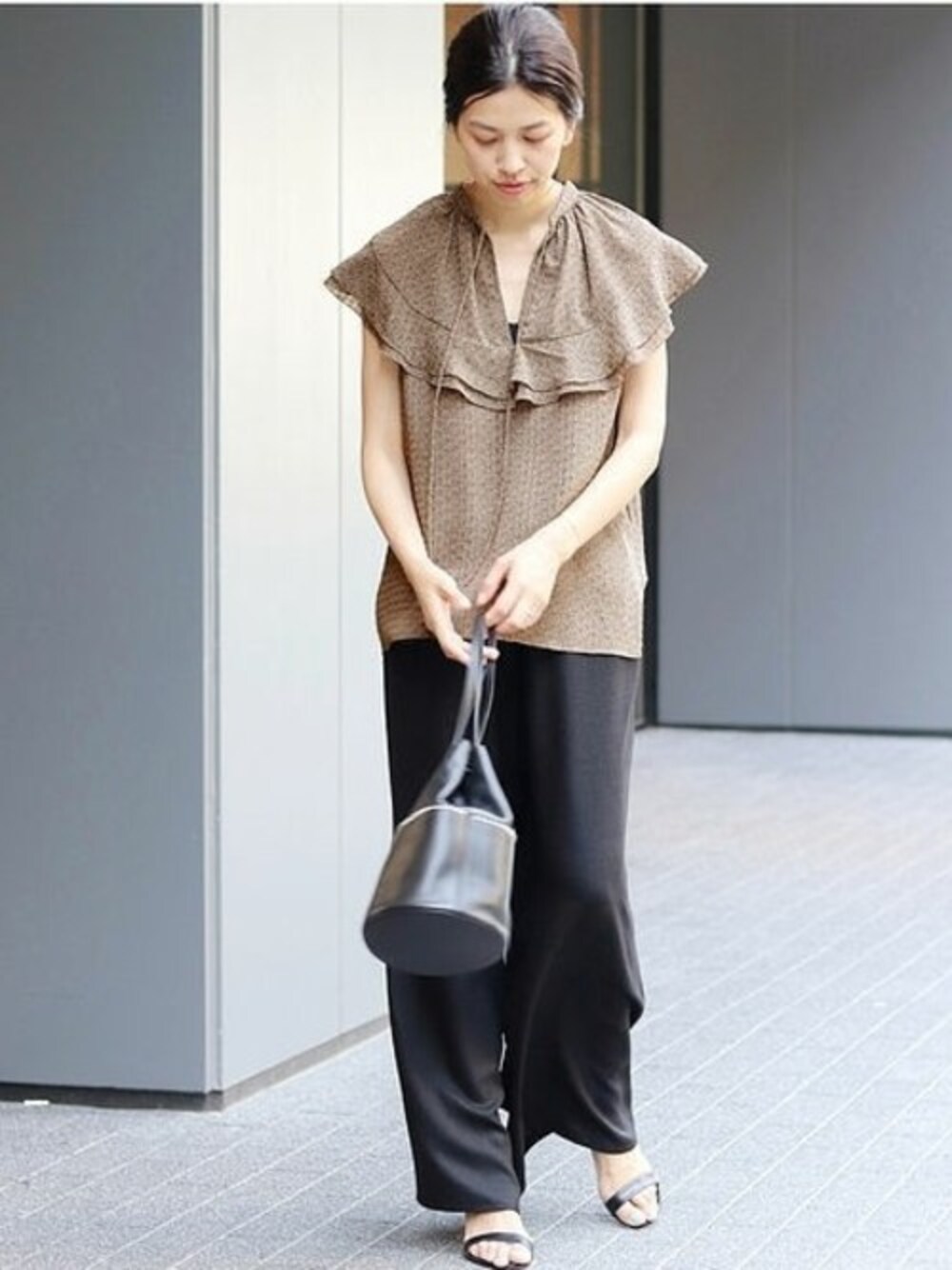 sono(IENA 本社)のシャツ/ブラウス「IENA LA BOUCLE サッカープリントフリルノースリーブブラウス◆」を使ったコーディネート