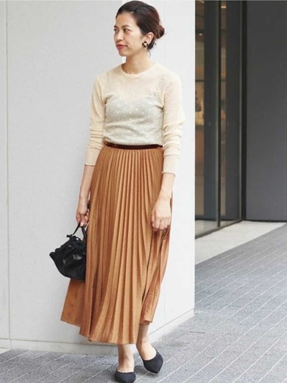 ドット柄のカットソー。 ワントーンでレディに着こなして。