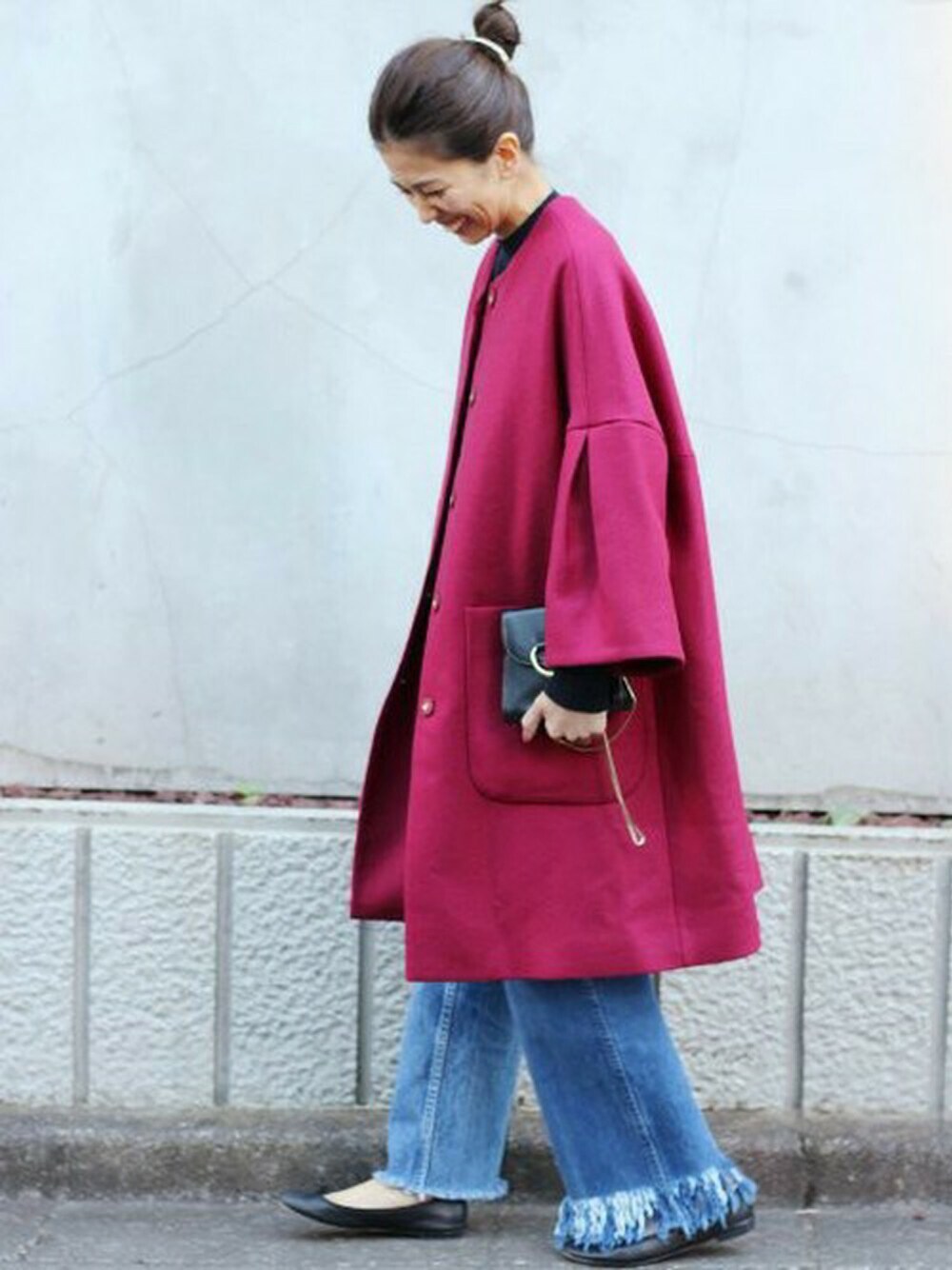 大人気のノーカラーコート。 袖口のぷっくりしたシルエットがIENA LA BOUCLEらしいディテール。 派手すぎない落ち着いたピンクのカラーも◎