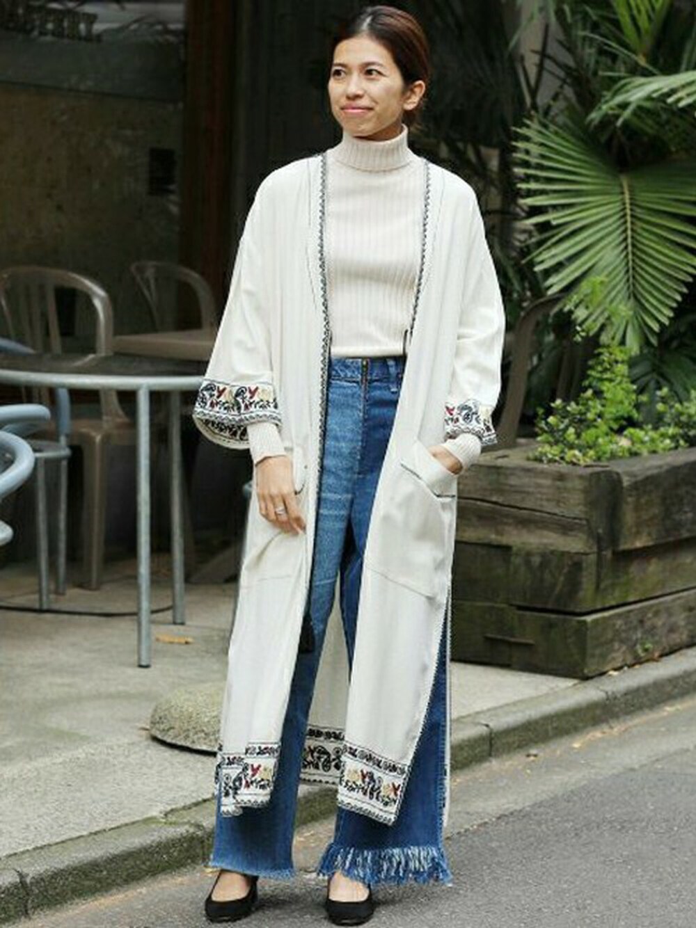雰囲気のあるエンブロイダリーガウンコート。 この時期にはコートにレイヤードさせて着こなすのもオススメです。