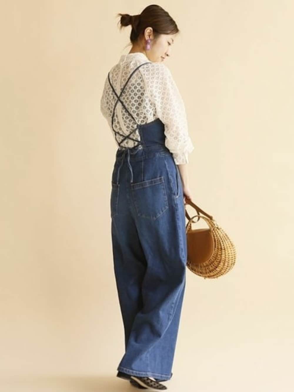 華奢な紐や後ろのレースアップなど、かわいいけど子供っぽくならないアイテム。 柔らかな着心地とコンパクトでハイウエストなシルエットが魅力のサロペットです。