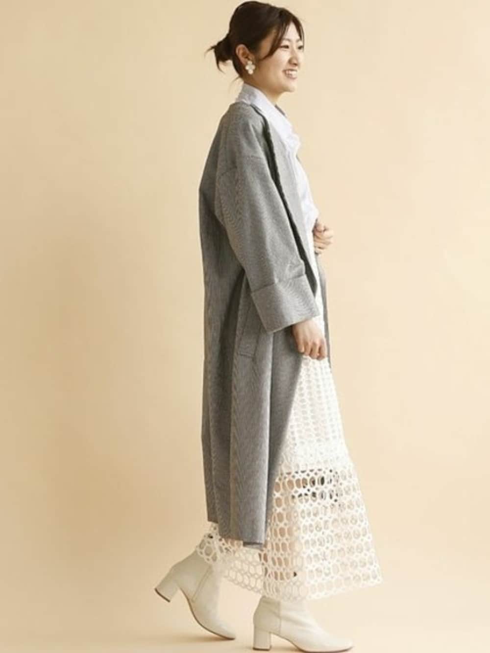 レースを3種類使用したとっておきのスカートにはシャツを合わせてきちんと感を。