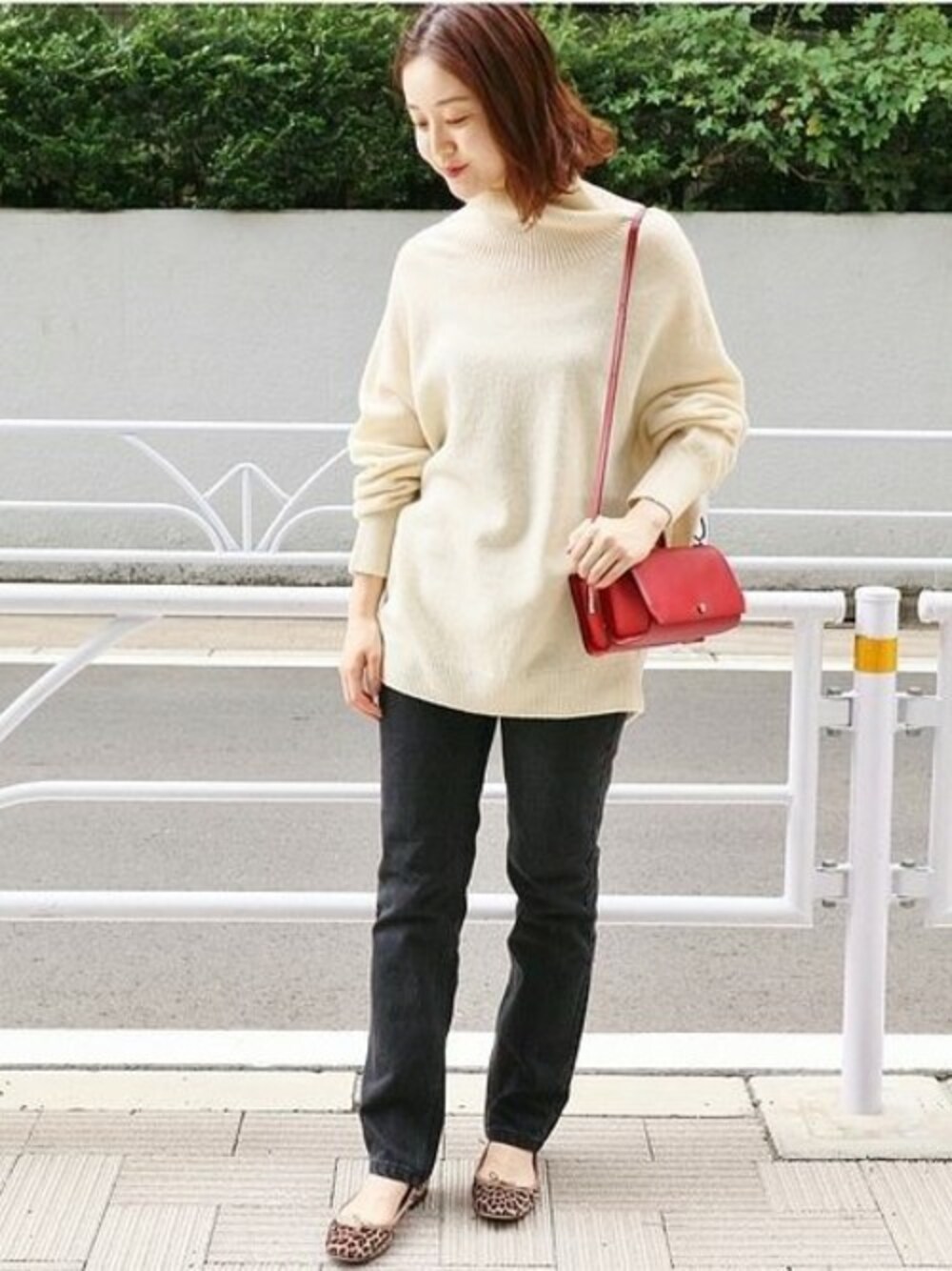 着心地のよさが人気のコクーンニット。 今シーズントレンドの細身パンツで着こなして。